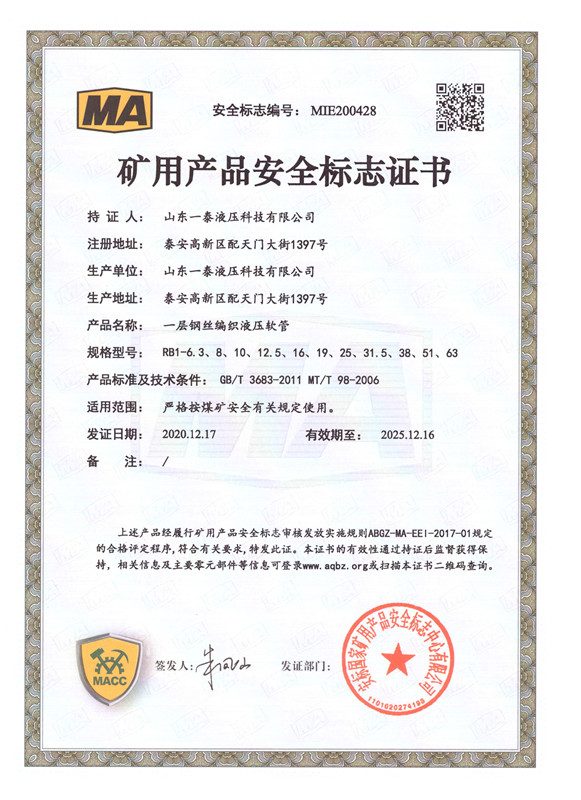 山東一泰液壓科技有限公司,坐落于山東省泰安市國家高新技術(shù)產(chǎn)業(yè)開發(fā)區(qū)配天門大街1397號,總占地面積6萬6千多平方米,總建筑面積4萬多平方米。公司注冊資金7500萬元,資產(chǎn)值3億元。公司始終專注于超高壓石油鉆探軟管、柔性節(jié)流壓井軟管、井控高壓耐火軟管總成、高端機械軟管、以及礦用液壓管體等配套產(chǎn)品的研發(fā)和生產(chǎn)。產(chǎn)品廣泛用于陸地和海洋石油鉆井、勘探、開采、輸送等領(lǐng)域;同時還為軍用系列、大型船舶系列提供了優(yōu)質(zhì)產(chǎn)品的供應保障和信任服務。